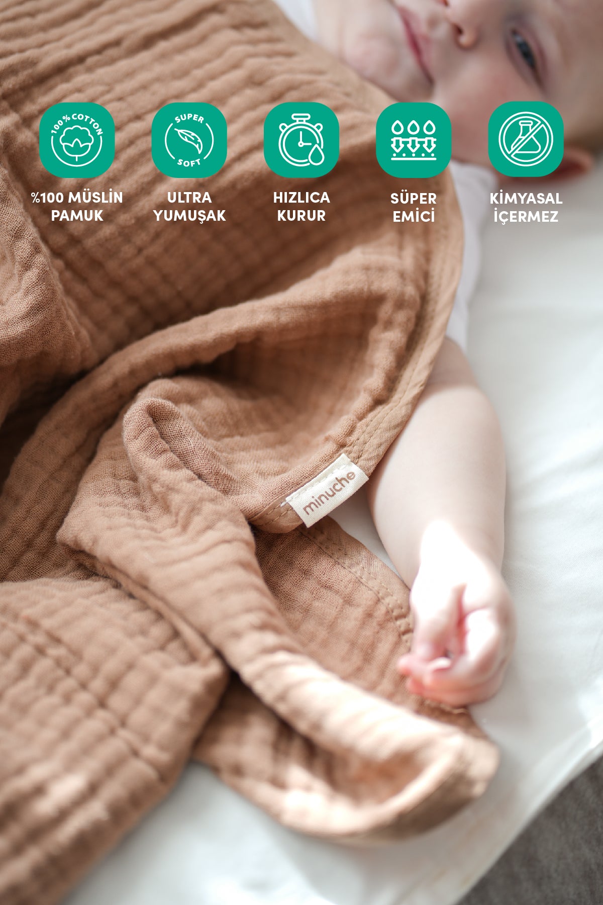 • Müslin kumaşı sayesinde yıkandıktan sonra bile yumuşacık kalır.